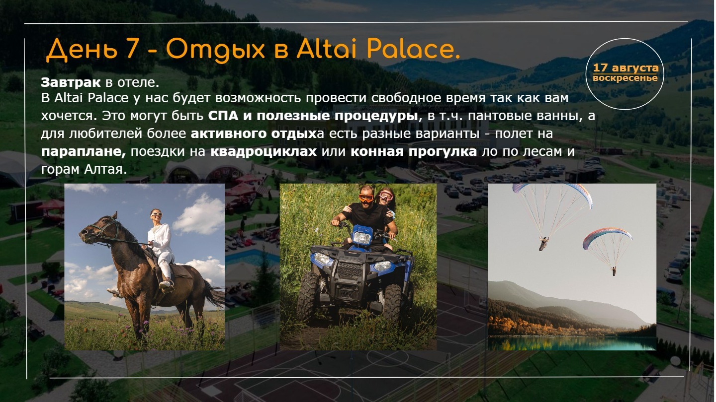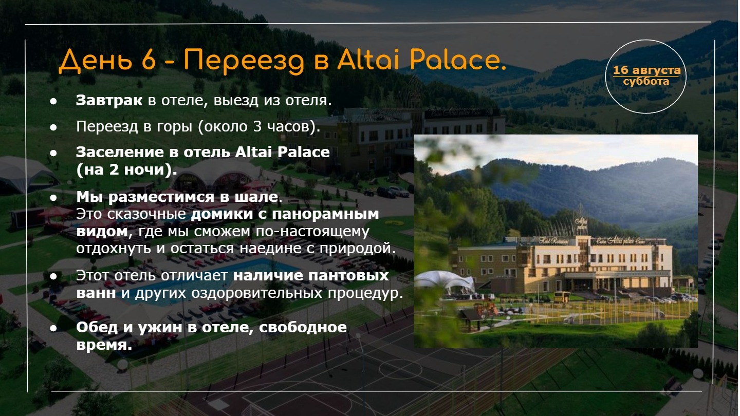 Проживание 2 ночи в отеле «Altai Palace» на базе завтраков.