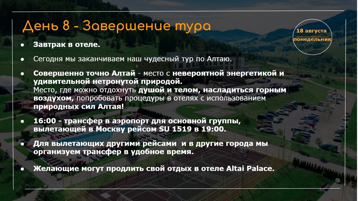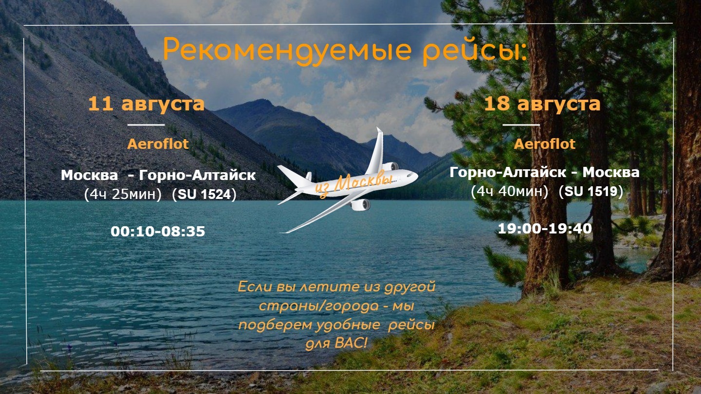 Трансфер из аэропорта Горно-Алтайска по рейс, прибывающий в 8.35 из Москвы.