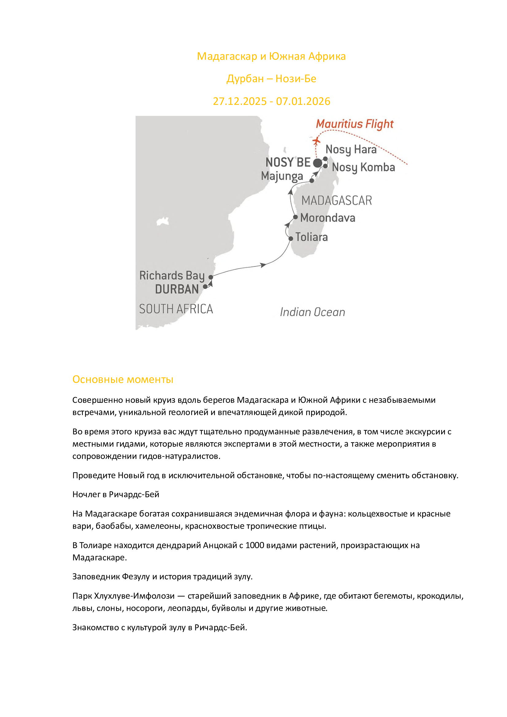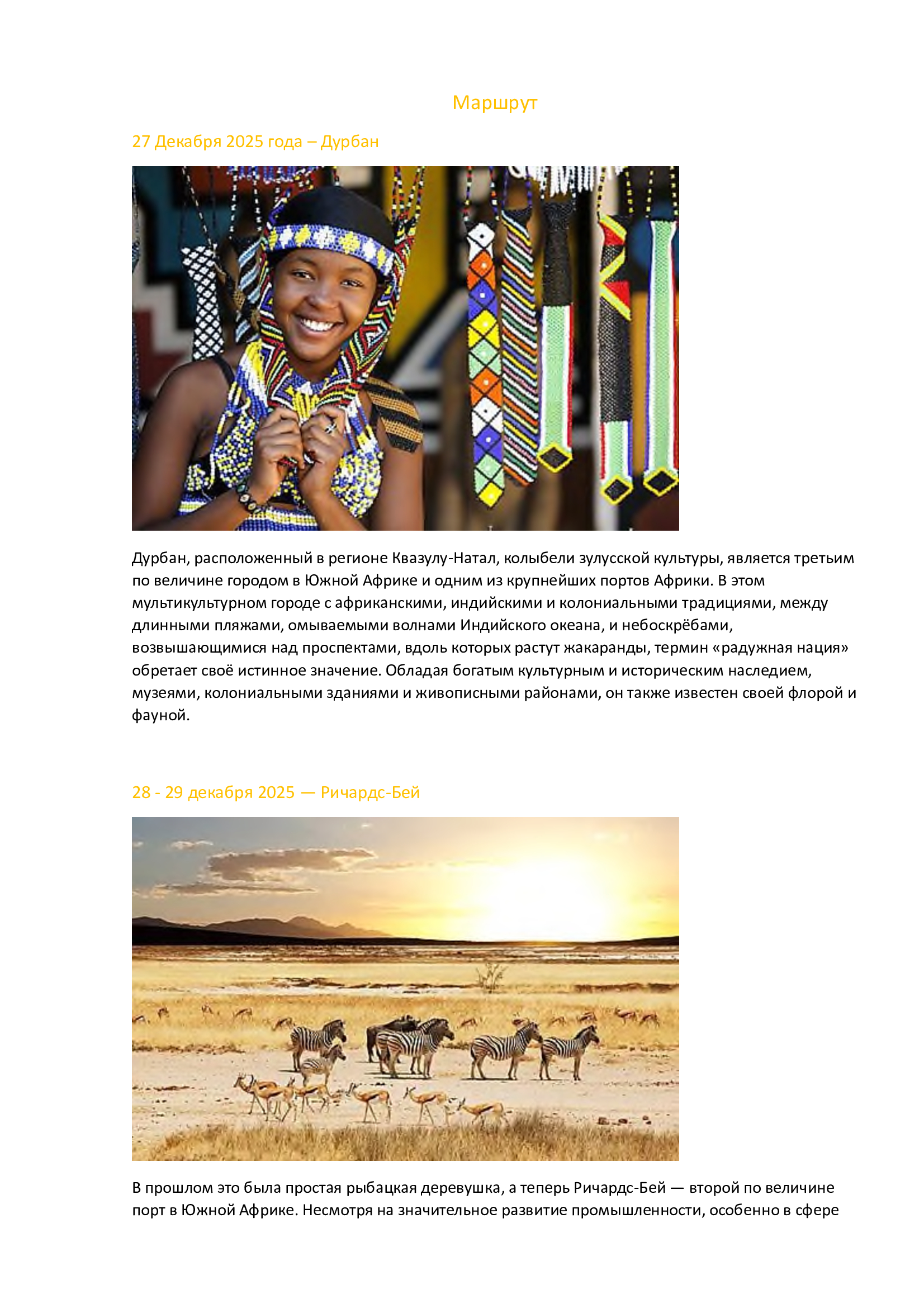 Программа путешествия