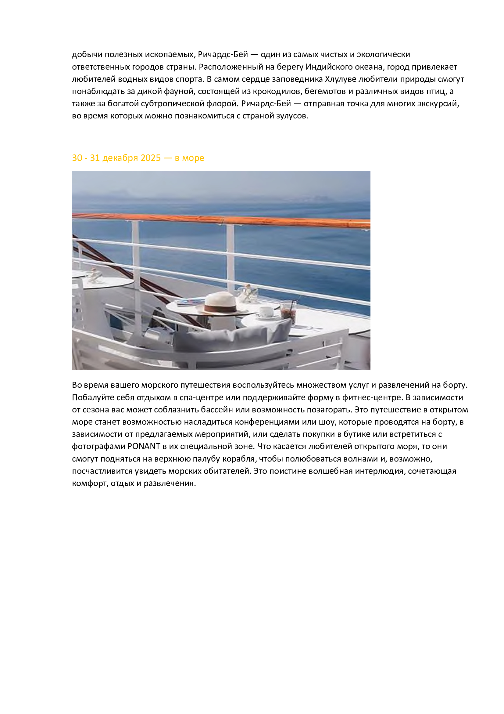 Личные расходы: прачечная, связь, спа, услуги доктора на борту;