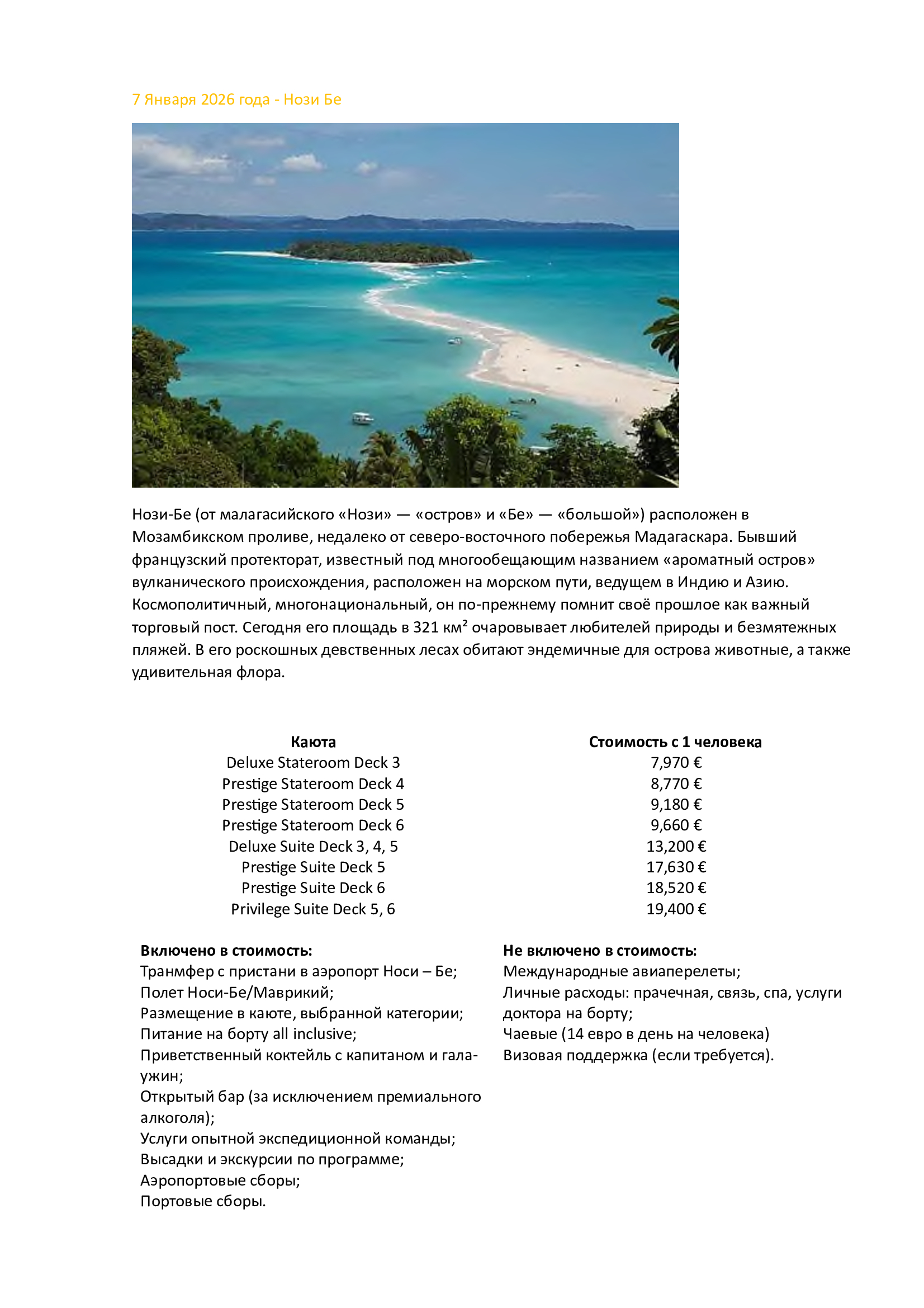 Трансфер с пристани в аэропорт Носи – Бе;