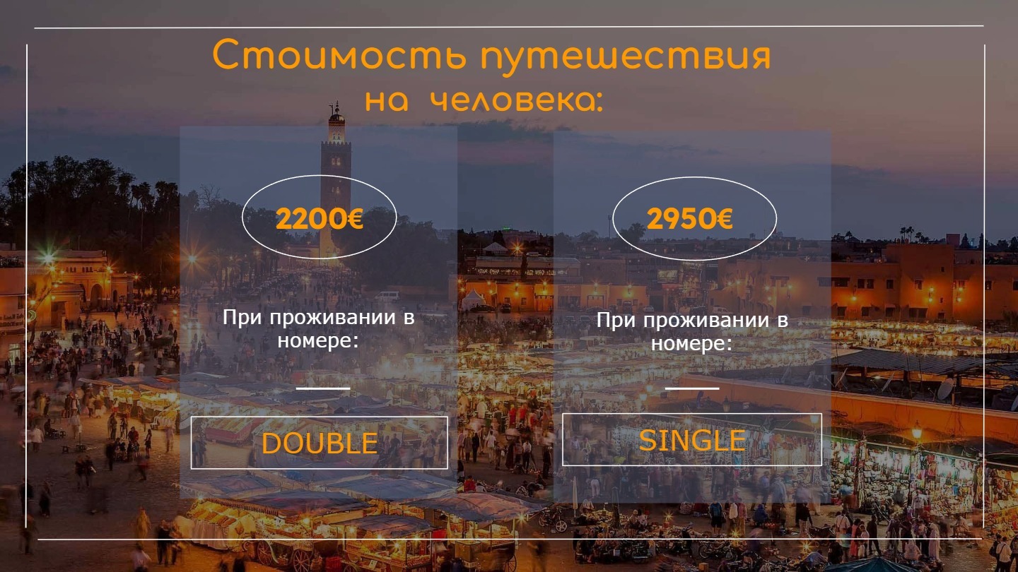 2200 € с человека при размещении в двухместном номере