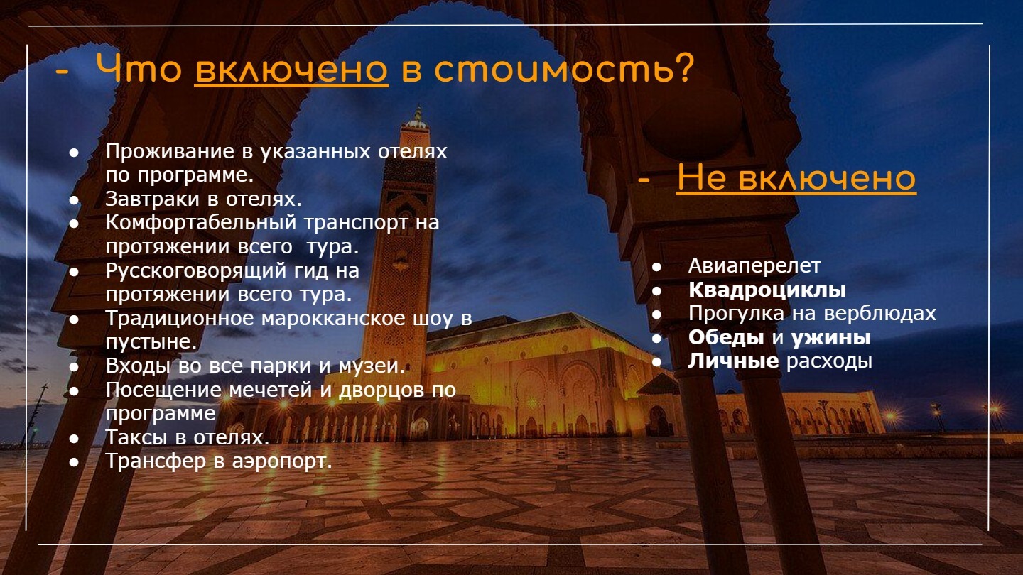 Что включено в стоимость: